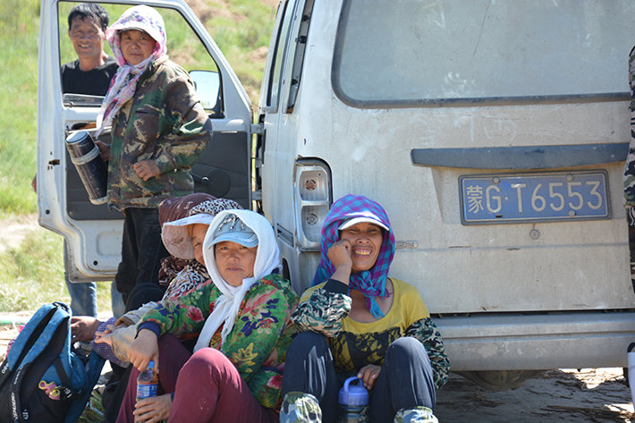 Hua’s photographs also spotlight the people behind the greening efforts. In his opinion, local farmers and herders have been central to Tongliao’s sand control drive. Workers usually travel long distances to reach the sandy areas before dawn and return only after dark, taking brief midday breaks in the dunes. With many men migrating to cities for work, women have become a key force in the greening effort, appearing prominently in many of Hua’s photos.